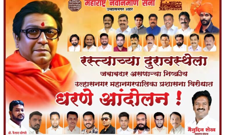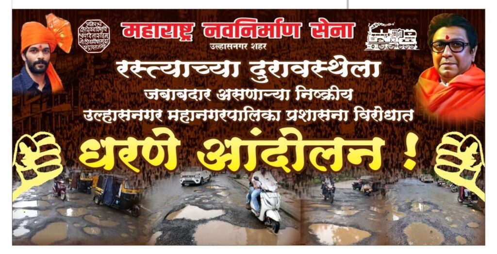उल्हासनगर की खस्ताहाल सड़कों पर मौत का खेल! मनसे का प्रशासन के खिलाफ उग्र धरना आंदोलन