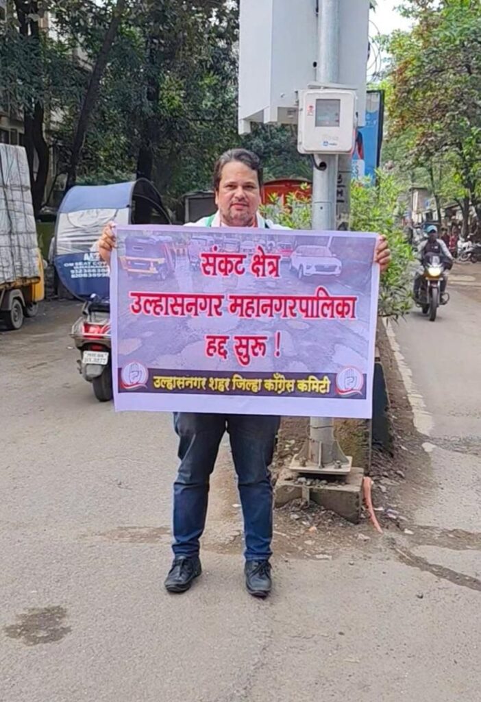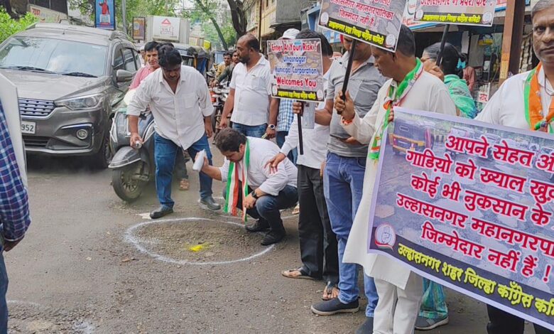 उल्हासनगर शहरातील जीवघेण्या खड्डेमय रस्त्यांमुळे उल्हासनगर महानगरपालिका हद्दीला “डेंजर झोन” (संकट क्षेत्र) घोषित करण्यात आल्याची घोषणा उल्हासनगर काँग्रेसतर्फे करण्यात आली. यानिमित्ताने आज शहरात जनजागृती अभियानही राबविण्यात आले.