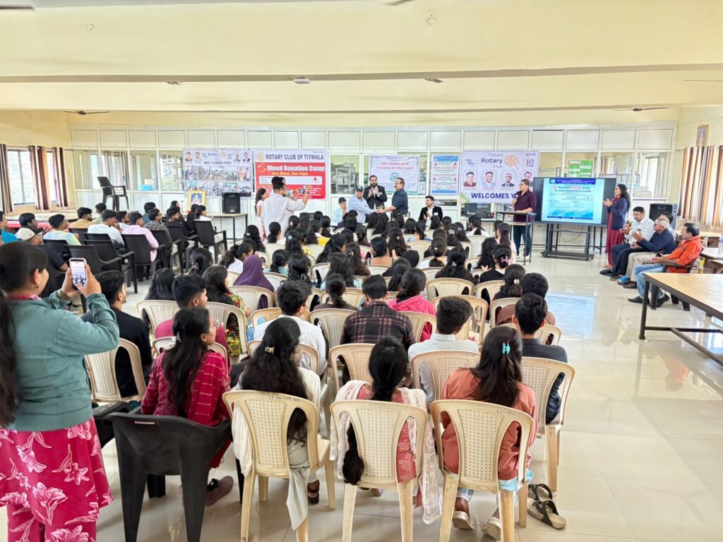 कार्यक्रम में मुख्य वक्ता के रूप में रत्न डॉ. निलेश वझिरानी (डिस्ट्रिक्ट सेक्रेटरी) एवं रोटरी क्लब टिटवाला के अध्यक्ष रत्न डॉ. सातपुते ने 200 से अधिक छात्र-छात्राओं को HIV/AIDS की रोकथाम, सुरक्षित जीवनशैली तथा रक्तदान के महत्व पर विस्तृत जानकारी दी।
