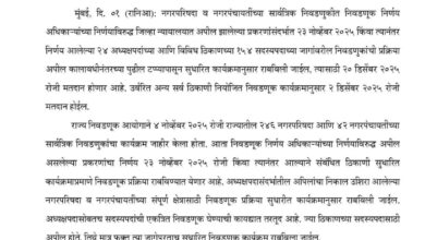 शौर्य टाईम्स रिपोर्टिंग : नीतू विश्वकर्मा महाराष्ट्र राज्य निर्वाचन आयोग ने नगर परिषद एवं नगर पंचायत चुनावों के संबंध में…